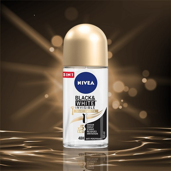 مام رول ضد تعریق زنانه ن.ی.و.اا Black & White Invisible Sitky Smooth حجم 50 میل ترک