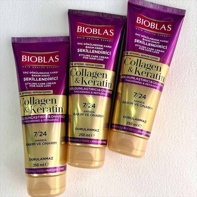 کرم موی کلاژن و کراتین بیوبلاس محصولی با کیفیت از کشور ترکیه است که با فرمولاسیون پیشرفته خود، به طور خاص برای موهای نازک، کمحجم و آسیبدیده طراحی شده است. این کرم مو با ترکیب پروتئینهای کلاژن و کراتین، به بازسازی ساختار مو کمک کرده و از ریشه تا نوک، موها را تقویت میکند. کمپلکس گیاهی B19، یکی از ویژگیهای منحصربهفرد این محصول، به تغذیه فولیکولهای مو و کاهش ریزش کمک میکند. این کرم مو به صورت مخصوص برای استفاده بعد از حمام طراحی شده و هم روی موهای مرطوب و هم خشک قابل استفاده است، بدون اینکه اثری از چربی یا سنگینی روی موها باقی بگذارد. فرمول بدون پارابن و هیپوآلرژنیک این کرم، آن را برای پوستهای حساس و استفاده روزانه مناسب کرده است. این محصول با ایجاد لایهای محافظ، موها را در برابر عوامل آسیبرسان محیطی مانند نور خورشید، آلودگی و حرارت محافظت میکند.